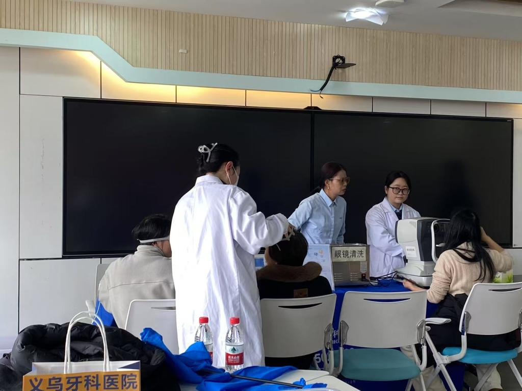 第二场活动于3月11日展开,服务范围进一步拓宽。首先为女教职工开展唇膏DIY制作,其次,三溪堂中医保健院、义乌爱尔眼科医院及义乌口腔专科医院开展中医把脉、针灸理疗、眼科验光、口腔检查等义诊服务。