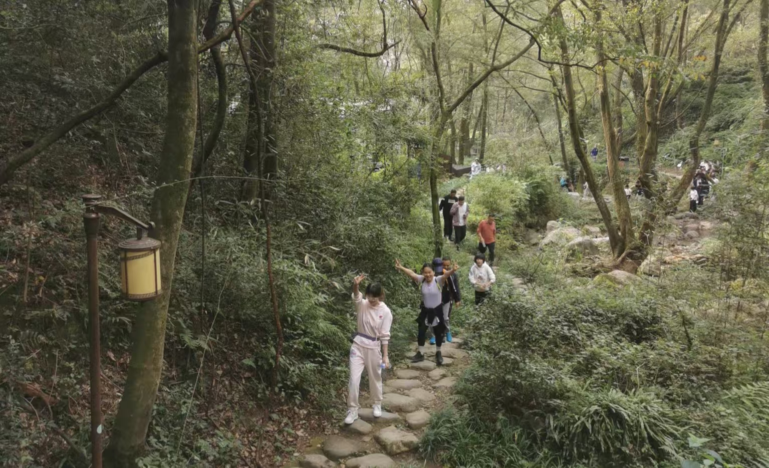 活动当天,老师们于上午8点在金华山游客服务中心集合,随后统一乘车至双龙水电站出发,沿双龙溪峡谷、双龙洞等指定路线毅行,途经冰壶洞最终抵达鹿女湖终点站。